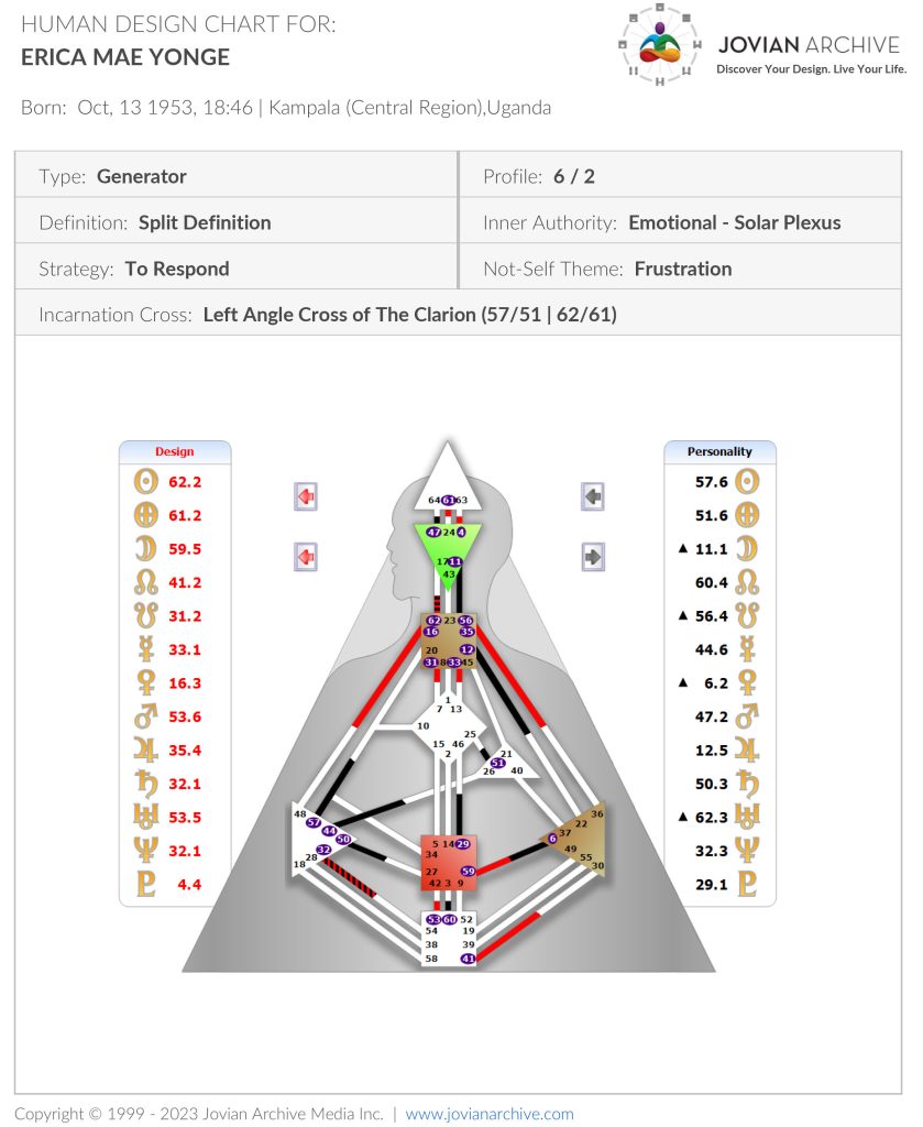 Human Design is a highly accurate system of analysis based on the I Ching, Western Astrology, Kaballah, Chakras, and the science of Genetics. It’s a high frequency message for those who want to achieve validation for maximum authenticity and personal success.